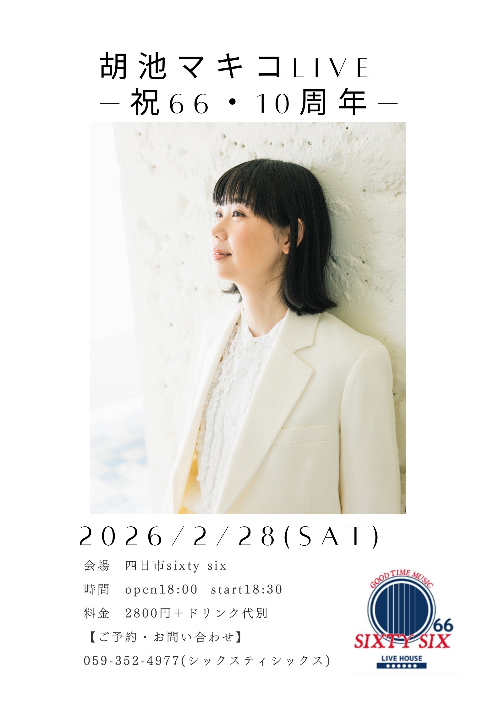 会場:sixtysix(四日市) 時間:open18:00 start18:30 料金:2800円+ドリンク代別【ご予約&お問い合わせ】059-352-4977(シックスティシックス)または、 info@koikemakiko.com (胡池マキコ)まで